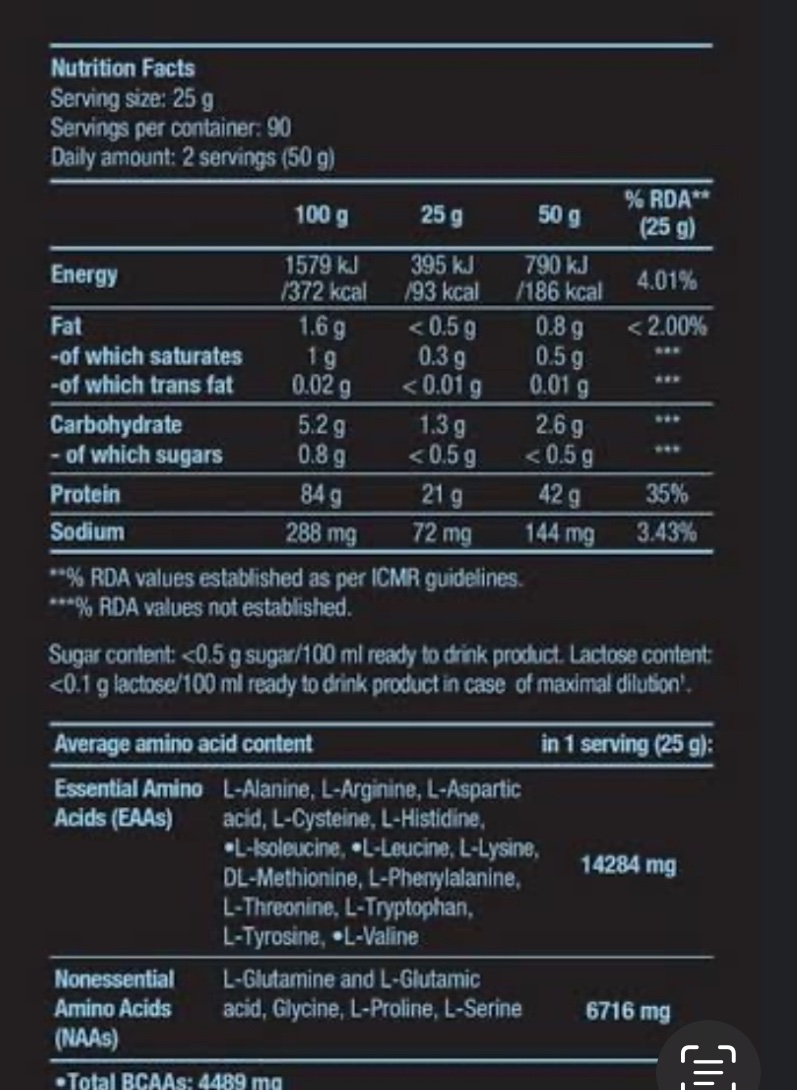 - 10 جرام من EAA، بما في ذلك 4.5 جرام من BCAA (الأحماض الأمينية ذات السلسلة المتفرعة)