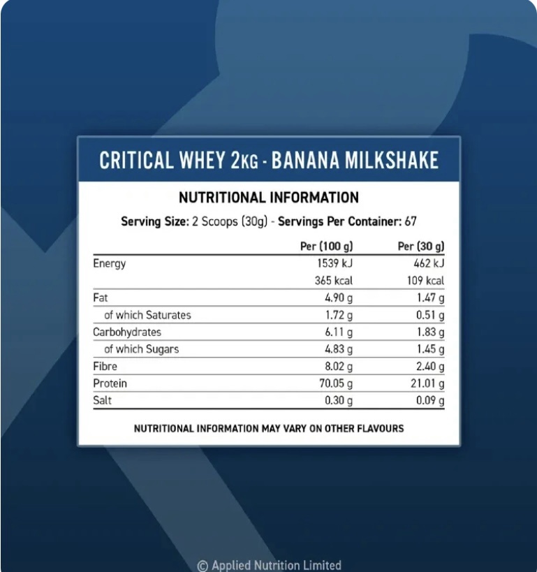 Critical Whey من Applied Nutrition هو مكمل غذائي عالي الجودة، يحتوي بشكل رئيسي على بروتين مصل الحليب. كل حصة 30 جرام تحتوي على جرعة مثالية من البروتين، مما يجعله أحد المكملات الأكثر تركيزًا في السوق. إليك بعض الخصائص التقنية التي تجعل Critical Whey منتجًا فريدًا: