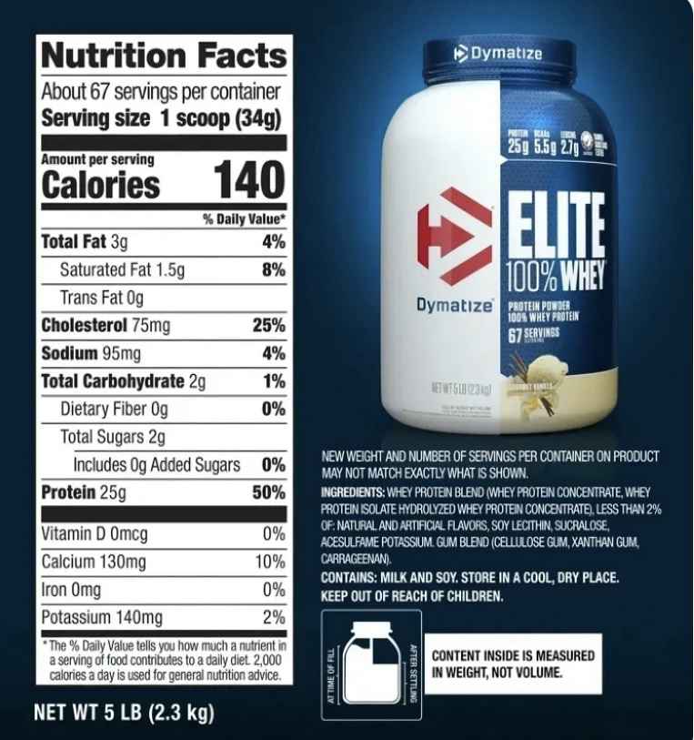 مكونات إيليت 100% واي من Dymatize